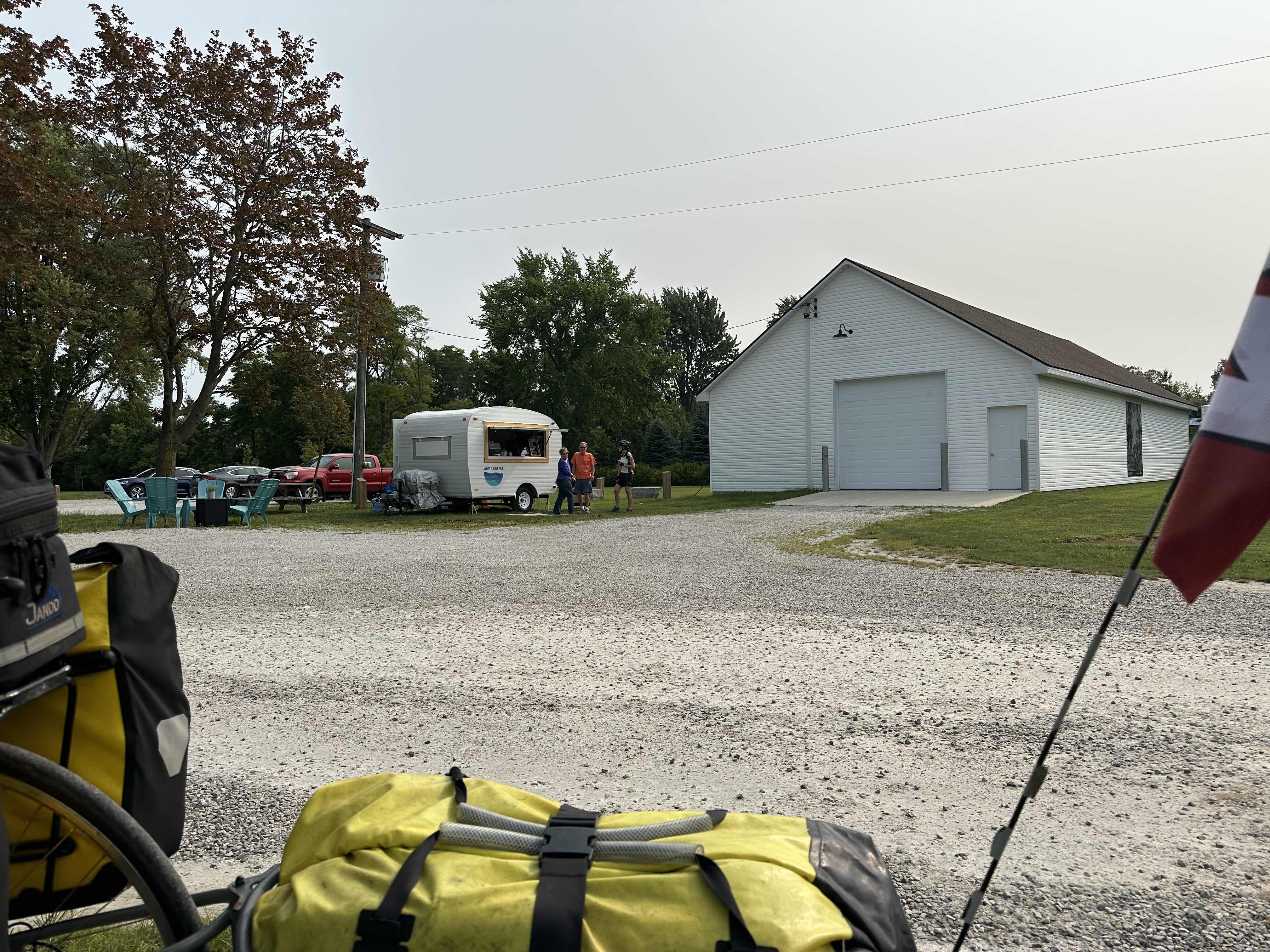 There have been so many times we have been on a hike and had a hard time finding the start of the trail in the parking lot. There was a little of that as we got on a bike path that sent us on a short loop around a small park, but then found the roads we had set out for. After a couple wobbles and getting the hang of the routefinding, we made our way along the south shore of Lake Huron with a little tailwind and some gorgeous paved bike lanes and paths. In the forst 20 km we saw a coffee sign and had to stop at Anita’s coffee stand. To be honest, it was the best cup of coffee I’ve had in weeks!