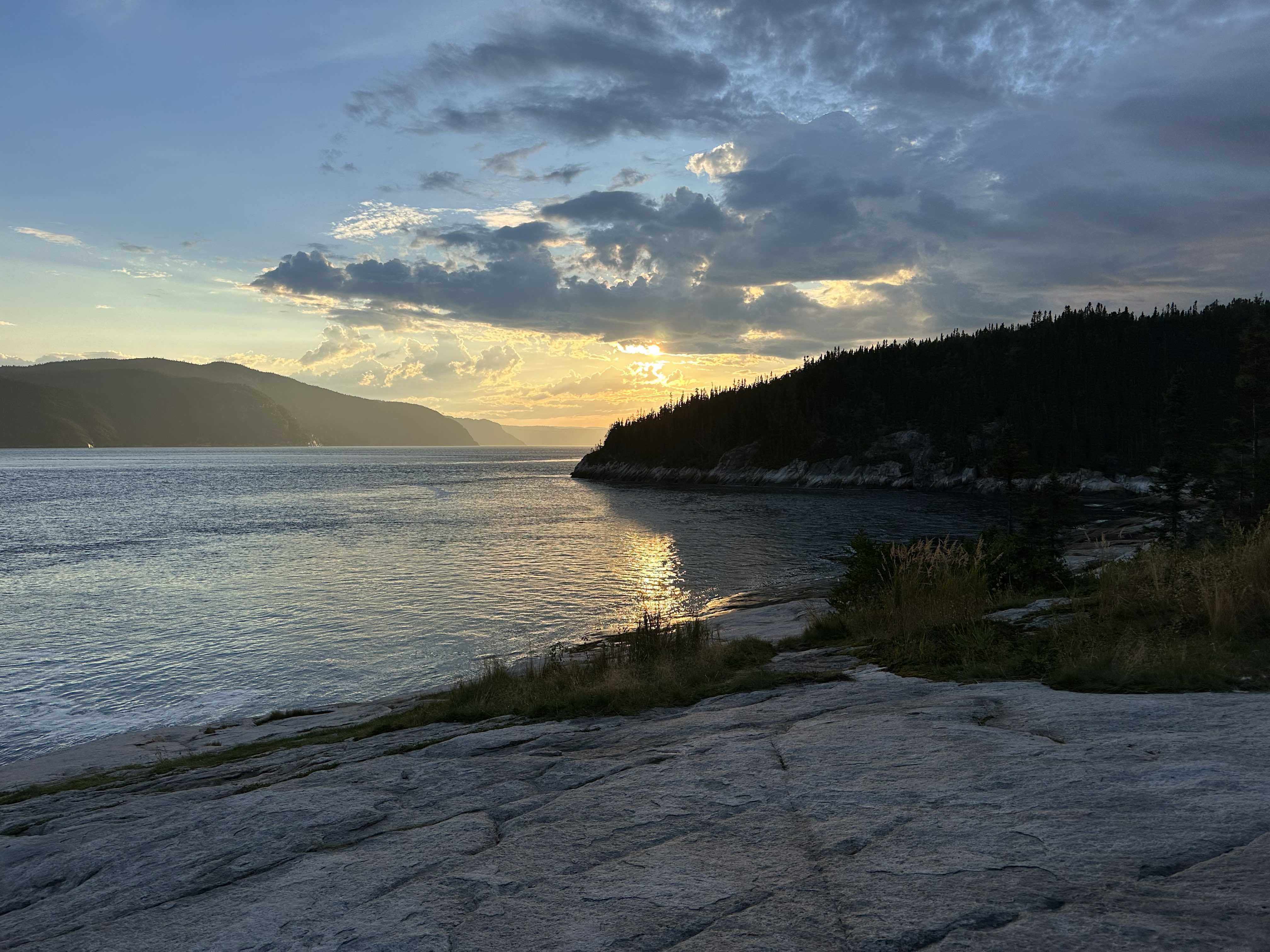 We reached Tadoussac and the home of another colleague from Laval Unversity in Quebec City - John Molson. I met John at the same PhD defence where I met Jean-Michel last year in Quebec and he told me about some great biking adventures he had had in this area. We corresponded over the past year and he provided incredible insights and ideas that had a huge impact on our route and plans - including his invitation to take these several ferries and visit Tadoussac where he has a cottage. I am so glad he invited us! The terrain and history of this area are engaging and beautiful and John’s full house (his wife, two adult kids with partners, two grandkids, and three dogs) was full of energy and they all welcomed us for a lovely evening with dinner, some great local beers, and a walk around the peninsula including a gorgeous sunset looking up the Fjord. I noticed, from time to time, John seemed distracted, looking off in the distance, toward the sea. Whenever this happened, he would quietly say “Beluga” - and once again he had spotted a whale surfacing off in the distance. We walked past the site of the first Jesuit chapel in North America (!) with the current building being built in 1737 or something crazy old like that. This area is where much of the conquest of North America took off and relations with First Nations and Champlain were codified. It’s a place to pause and think about how many world events hinged on those times.